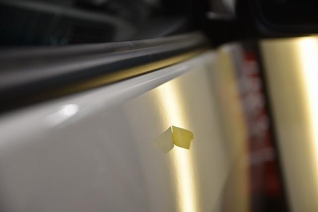 これまた端っこですね~( 一一) 運転席ドアの最上部・・・この場所は普段サイドミラーからも見えてしまうので気になって仕方ないかもしれませんね。