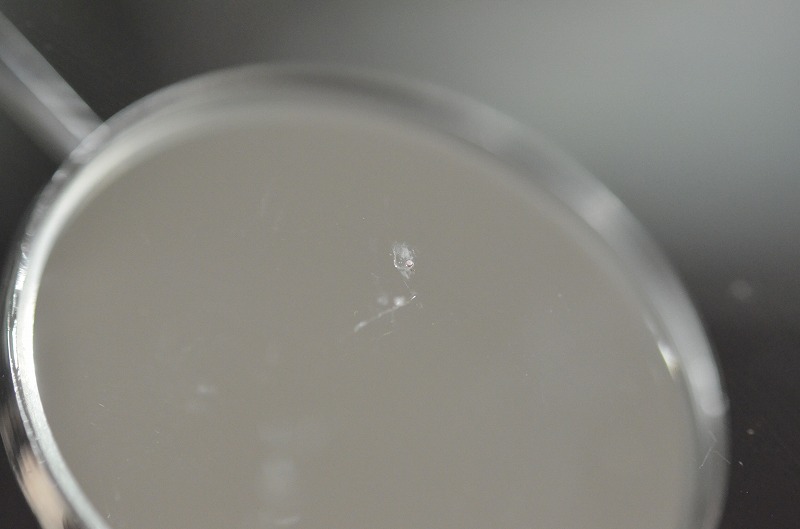 サイズは500円玉に充分入るレベル・・・でしたが傷が出来てからかなり時間が経っているとのことでした(時間が経てば経つほど素直にレジンが入らないこともあり、また仕上がりが濁る可能性が高くなるので早めのご相談をお勧めしています)。