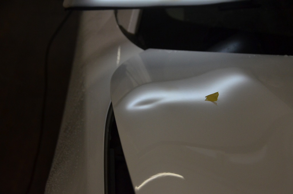 強風時に何かが飛んできたのでしょうか?それでも無傷だったのが幸い!当店にお越しいただく前に色々ご相談されたそうですが修理法の明確な回答がなかったようで・・・私達からすればまさしくデントリペア以外には考えられないケースですからね(^^)/ 諦めずにご相談いただいて本当に良かったです。