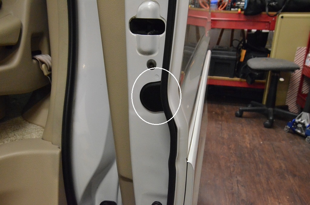 小さなエクボとは言えスライドドアの内部は補強も多く工具アクセスに苦戦することも多々(;_;)・・・なんですが!?今回は内張りを外すことなく側面のこの場所からアクセス出来ました(もう少し後方だったらここからは届きませんでした・・)。
