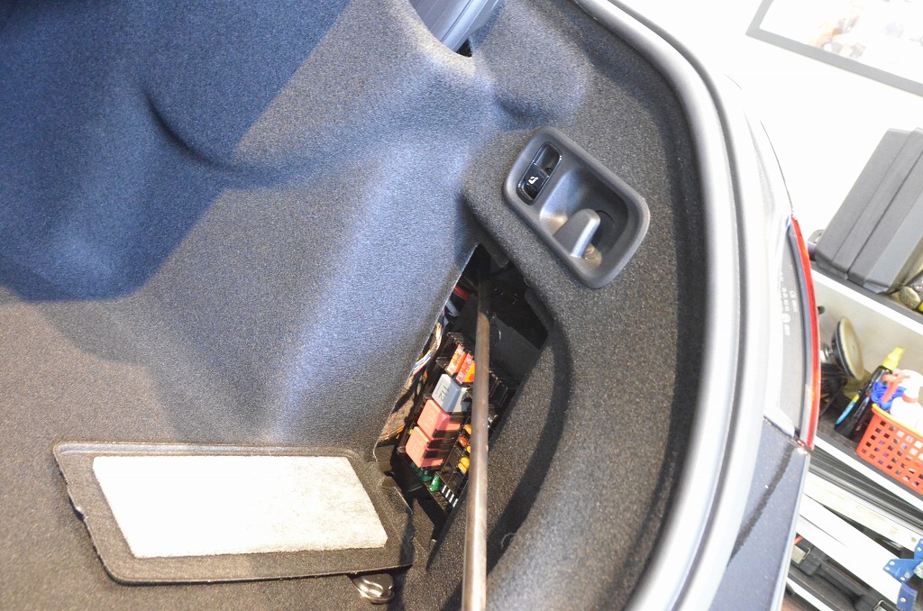 昔の車はセダンの場合、内装を軽く捲るだけで工具アクセス出来たものですが最近のお車はとにかくがっちりしてるので簡単にはいかないことも多々あります(^^;・・・が!?今回はヒューズBOXが鎮座しているパネルを外すことで難なく届きましたので!