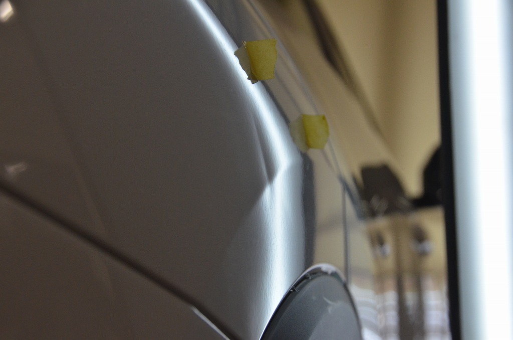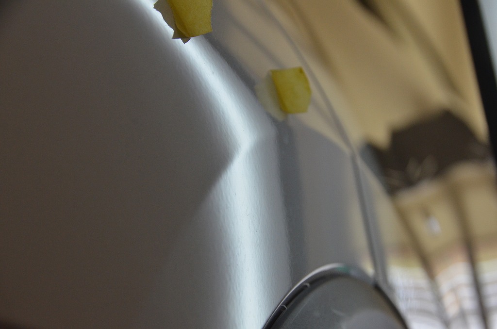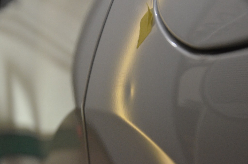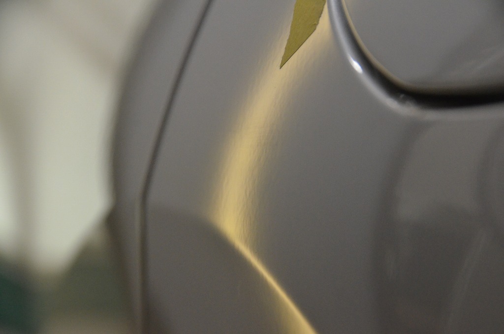左リヤフェンダーの給油口の近くのエクボはプーリング法で無事リペア完了!