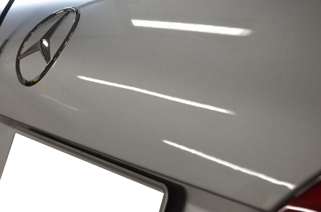 府中市より・・・メルセデスベンツB180のオーナー様、バックドアにいつの間にかのへこみ発見とのことでご相談いただきました。