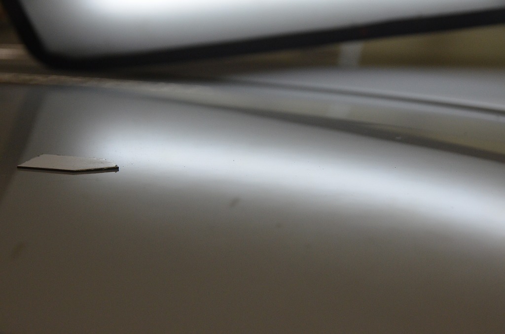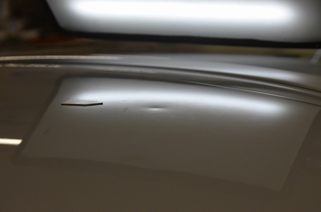 ルーフピラーの後方のへこみですが・・・実はこちらもリピーター様、昨年は左側に同様のへこみをリペアさせていただきましたがまたまたへこませてしまったそうです(^^;