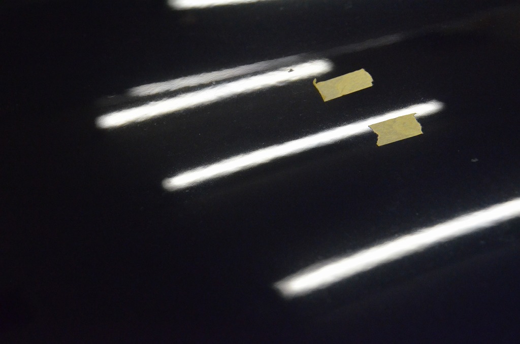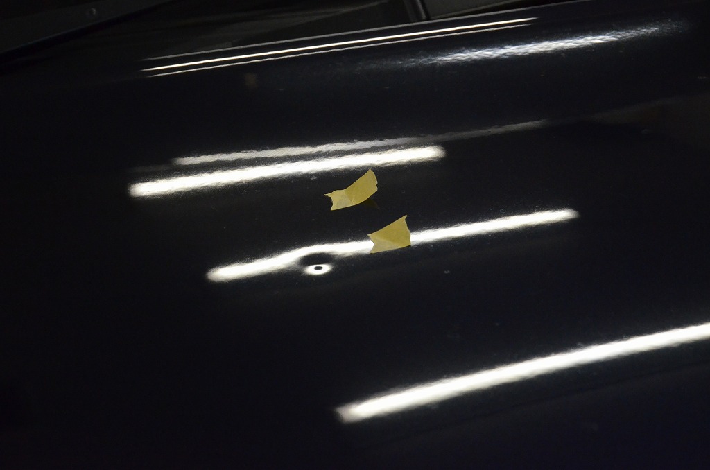 アルミボンネットの真ん中に目立つ2か所をやっつけて!