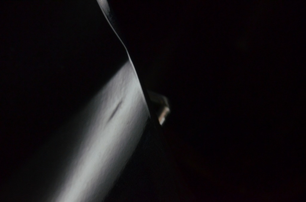 徐々にへこみが上がってくるとこのような横筋がくっきりと(>_<)・・・この深さですとやはり裏からピンポイントで突けるか否かがリペアのポイントになるかと思います。