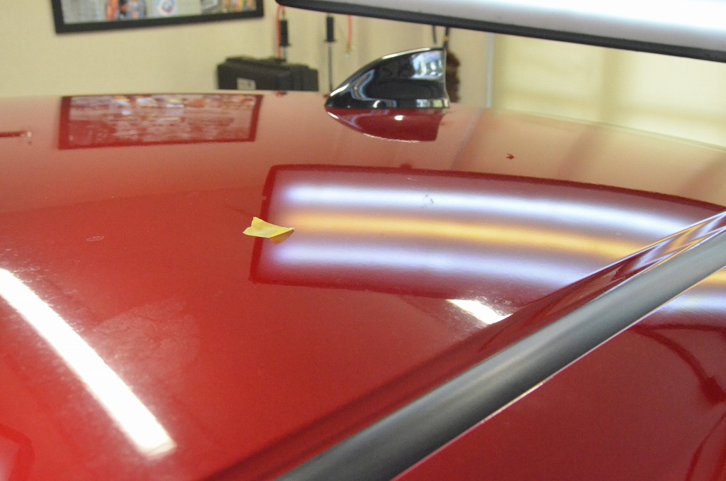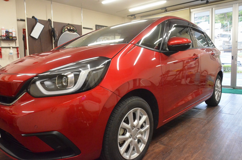 国分寺市より・・・ホンダフィットのオーナー様、最近購入されたそうですがその際に”雹害車両”とのご説明を受けていたとのことで今回ルーフのへこみでご相談いただきました。