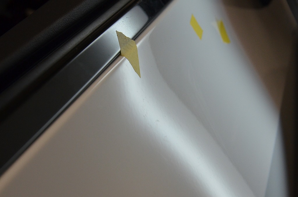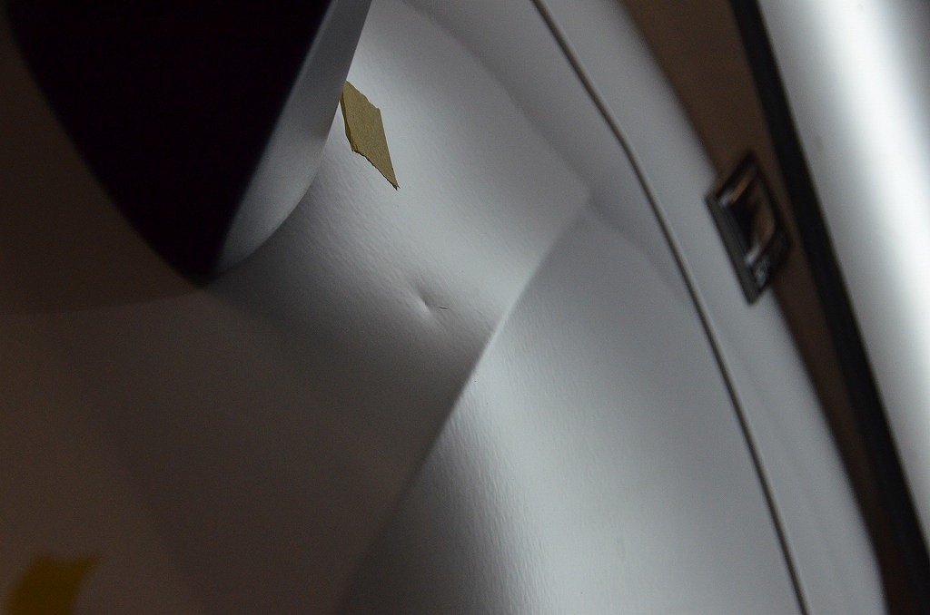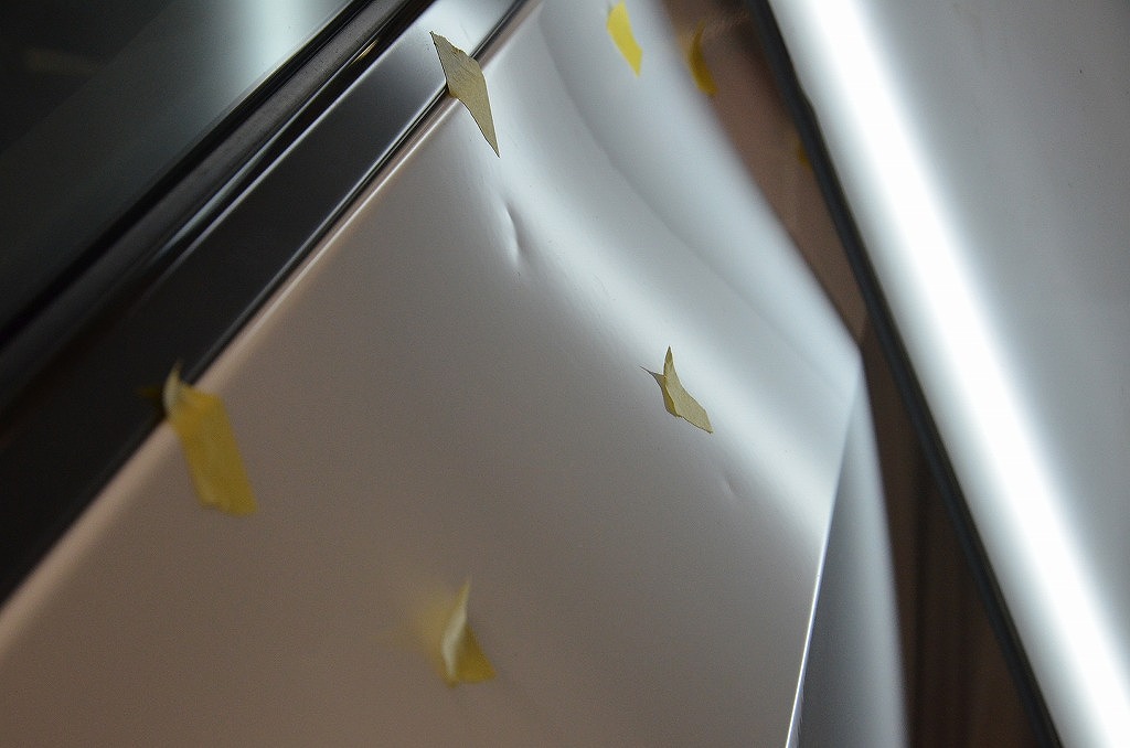 全てがパネル上部という何とも悩ましい位置!?工具アクセスが厳しい箇所がほとんどですが鋭いシャープデント故(少し傷が付いているものも・・)プーリング法では塗装へのダメージリスクが高く厳しいという・・・