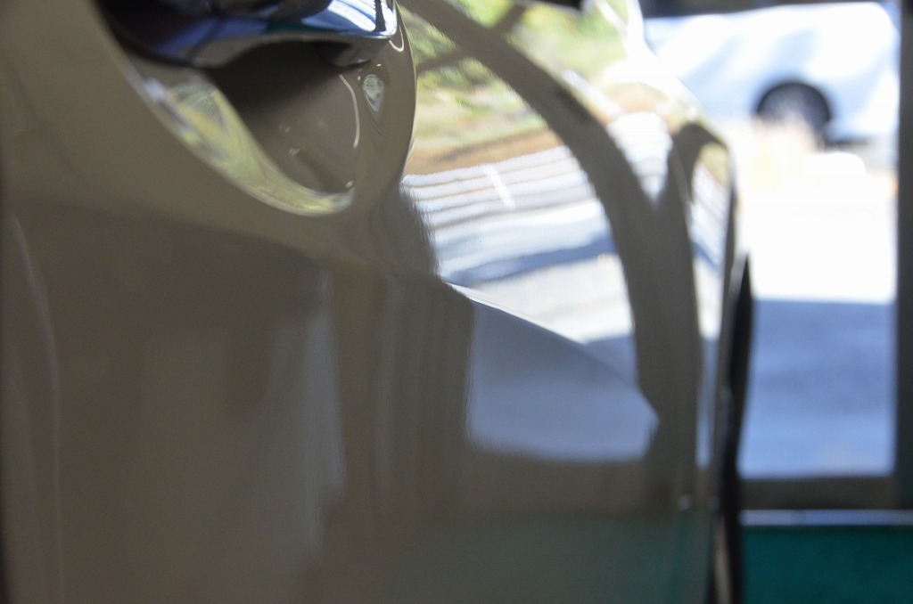 運転席ドア上部のプレスラインを跨いでのドアパンチ痕のようです。
