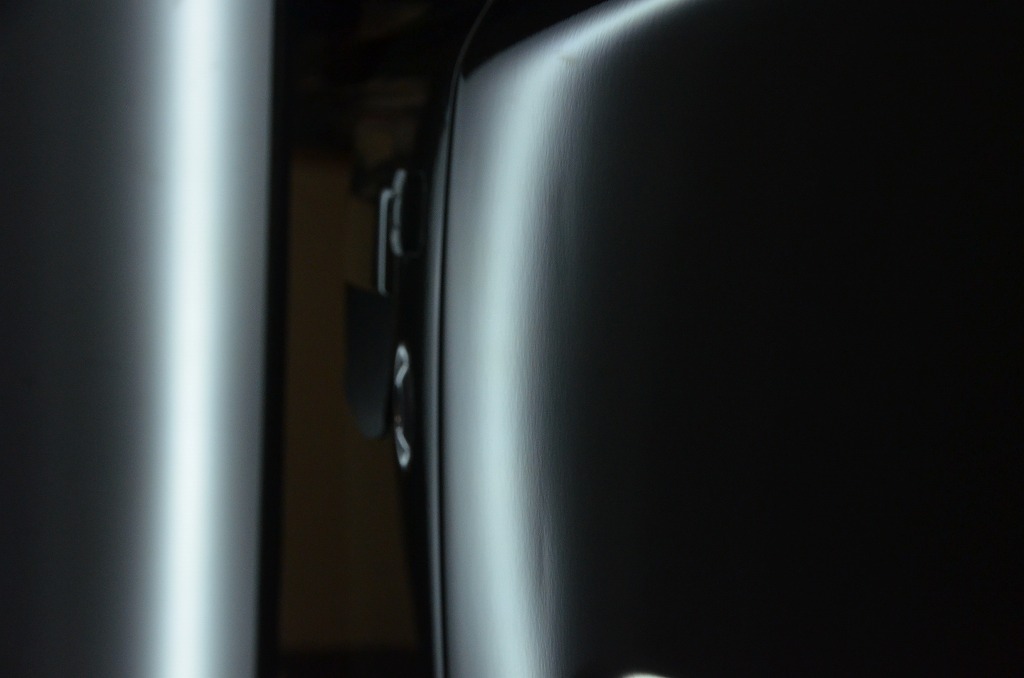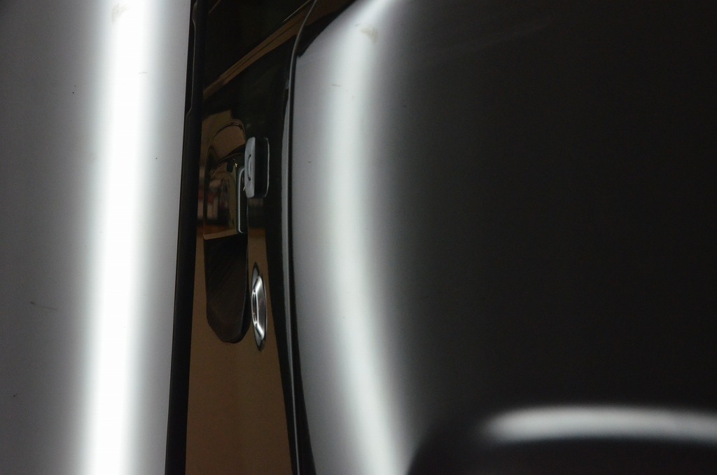 違和感の原因がこちら、縦に薄っすらと2か所・・・確かに元からあるものではないのでいつの間にか何かが当たったのでしょう( ;∀;) この程度の浅いへこみ、歪みレベルになると気にしない方にとっては何の問題もないでしょう、しかしお車をいつも綺麗に大切に乗られている方にとっては気になって仕方がないものです、ただもしこれを通常の鈑金塗装で直すのは勿体無さ過ぎ(・へ・)