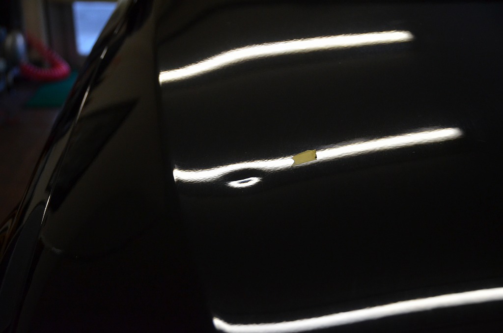 ちなみにこの先代のW205ベンツはボンネット、ドア、トランクにアルミパネルを使用しています。未だにアルミはデントリペアが出来ないという認識をされている方も多いのですが基本的にこのようなエクボやドアパンチであれば問題なくリペア出来ることがほとんどです(^^;