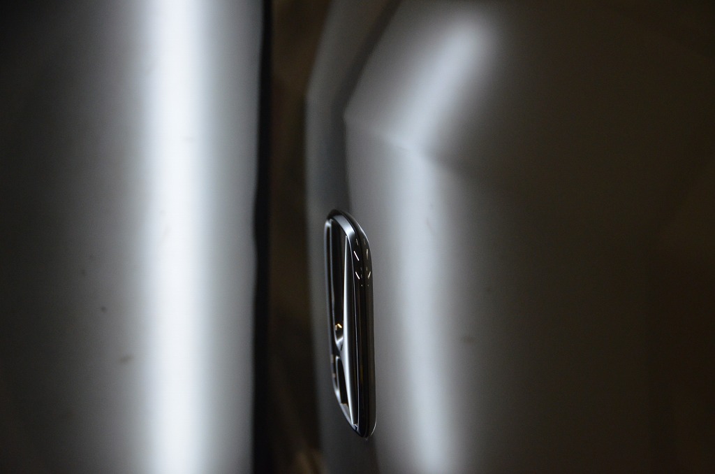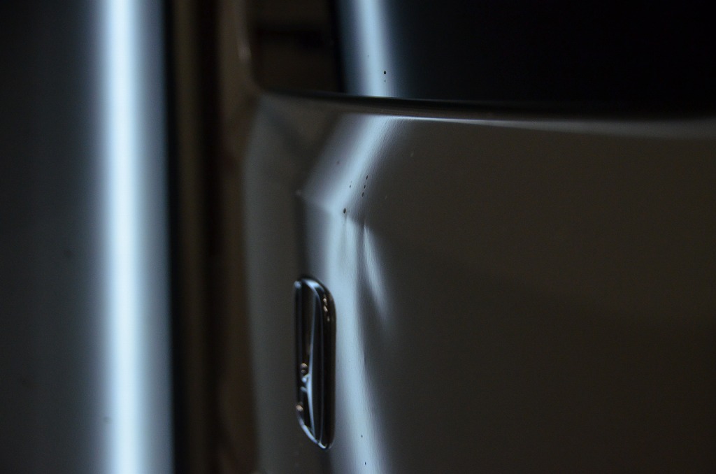 バックドアを開けた際にぶつけたかも?ということでしたがエンブレムの横のフラットな場所に広範囲の浅いへこみです。