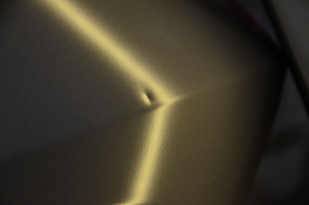 角度を変えると・・・プレスラインまで影響していることがわかります、また裏の補強が干渉して出来た出っ張りもあるのが確認出来ますね(;_;)