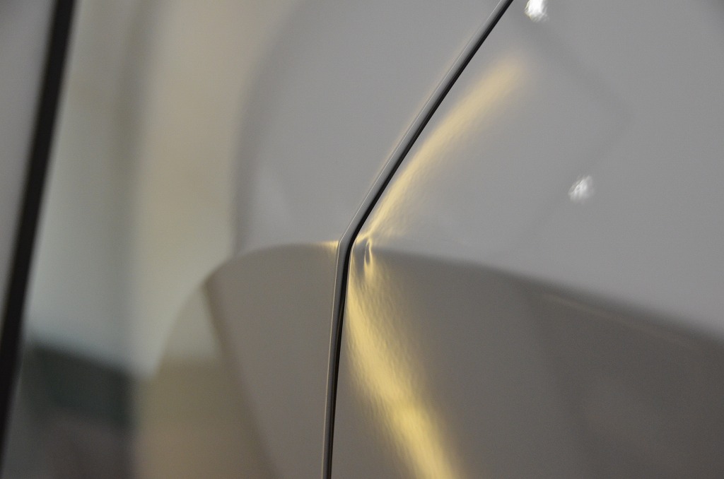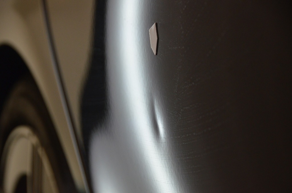 とても硬いので塗装肌が荒れないように慎重にリペアさせていただきました。ほんの僅か衝撃点の傷(塗装潰れ)が残りますがへこみは消滅!