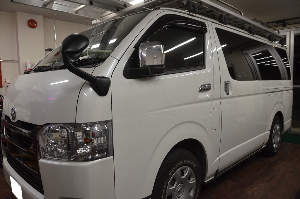 神奈川県横浜市より・・・トヨタハイエースの常連様は急遽のご依頼にてガラスリペアのご依頼、ご予約の方の合間の時間に合わせてのご来店。