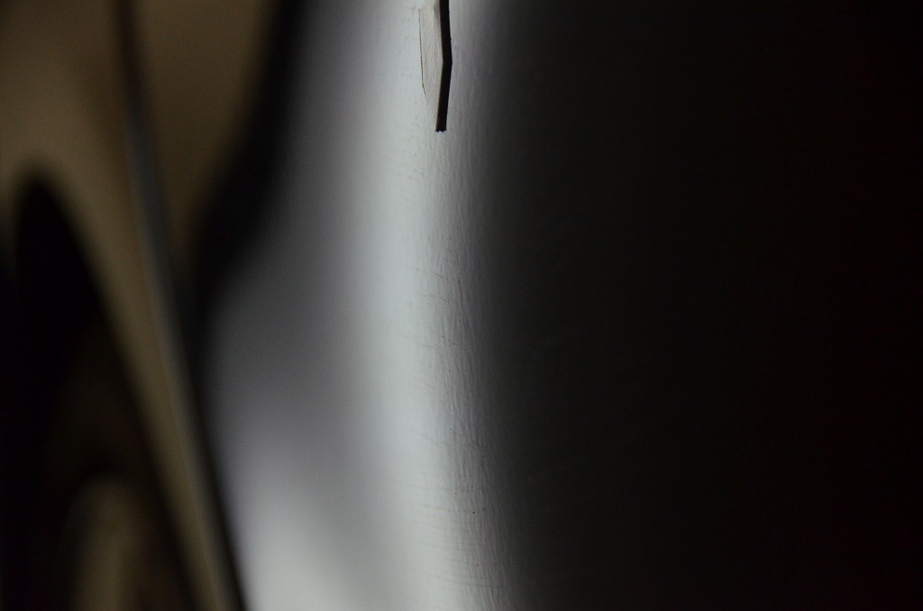 何とも嫌らしい場所です・・・リヤフェンダーの前方の縁ぎりぎり、しかもフェンダーアーチのプレスラインに小さいながらも存在感抜群、ちょっと難易度お高めです(T_T)