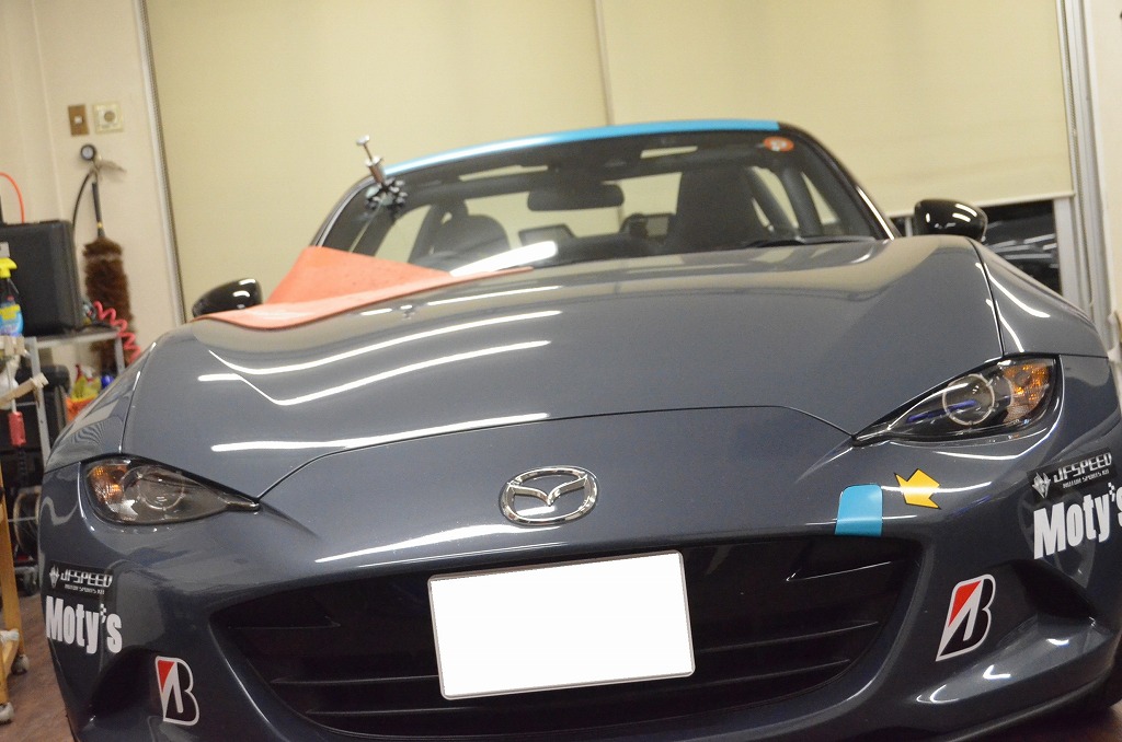 町田市内より・・・マツダロードスターのオーナー様、前回はデントリペアでしたが今回はガラスリペアのご相談。