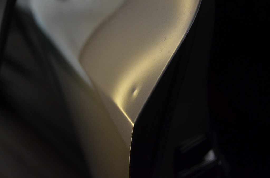 内張りを外してぎりぎり届きました。縁に僅かに出来た山折れ線は残る旨をご説明していましたがうまくぼかすことでまずわからないレベルになって!オーナー様にも大変喜んでいただけました。