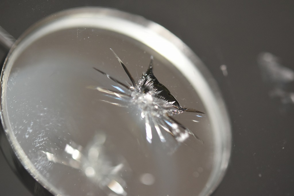 そしてこちらは!?取引業者様からのご依頼にて車検を控えたお車のガラスリペアとなります。しかしサイズも500円玉大を少し超えていて割れ方も複雑なのできっちりリペア出来てもリペア痕がそれなりに残ってしまうケース( ;∀;) 運転席の目の前等だと痕跡が気になる方もいつので無理にリペアをお勧めはしていません・・・それでもこのままでは当然車検には通りませんので!?
