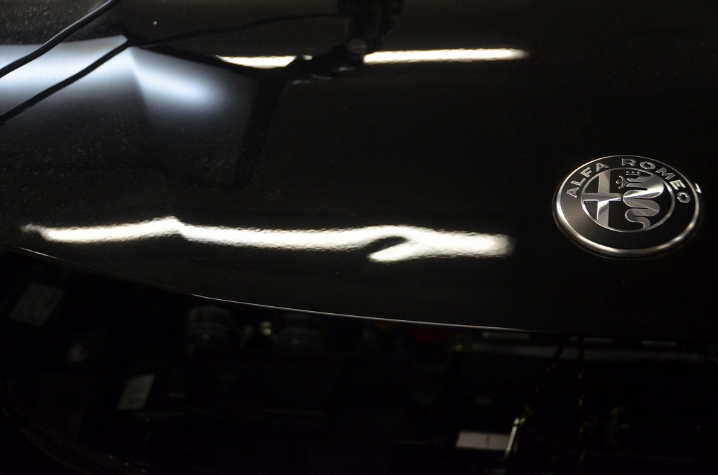 神奈川県相模原市より・・・アルファロメオジュニアのオーナー様、過去に違うお車で2回ほどご依頼いただいているリピーター様となりますが今回は購入されたばかりにも拘らずいつの間にかボンネットにへこみが出来ていたということでご相談いただきました。
