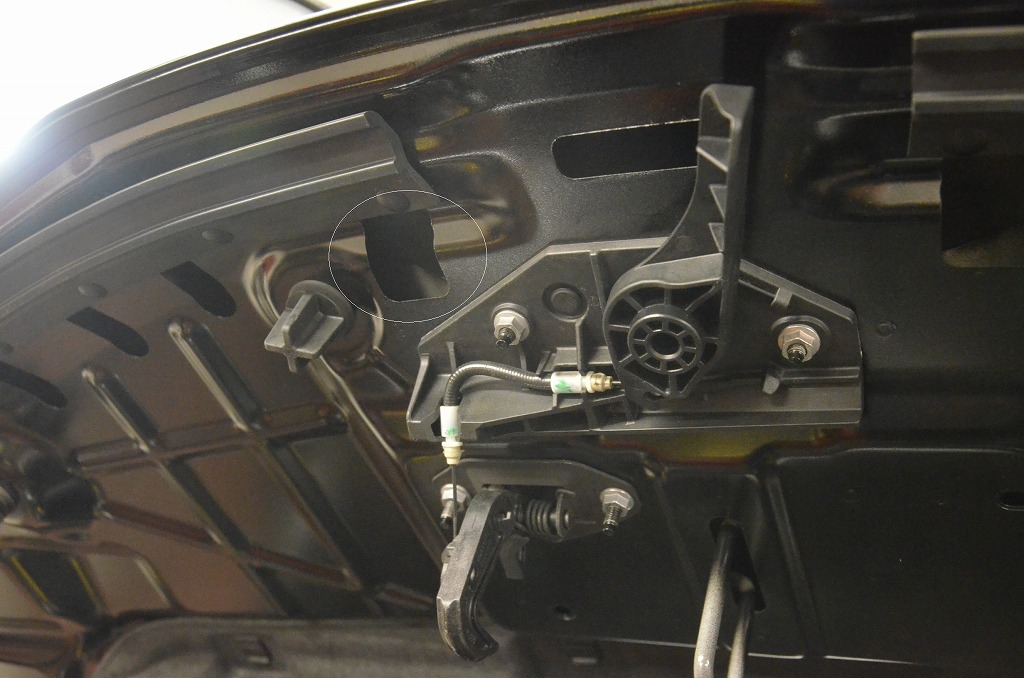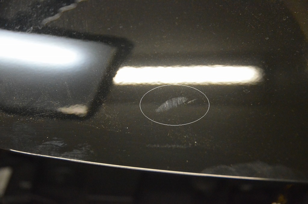 ボンネットの先端、エンブレムの横なので結構目立ちますね( ;∀;) 何かが当たったような薄い擦り傷が付いていましたが磨けば何とか落ちそう、あとはへこみの裏の環境がどうなっているか?初見のお車なので心配ですがまずは確認です。