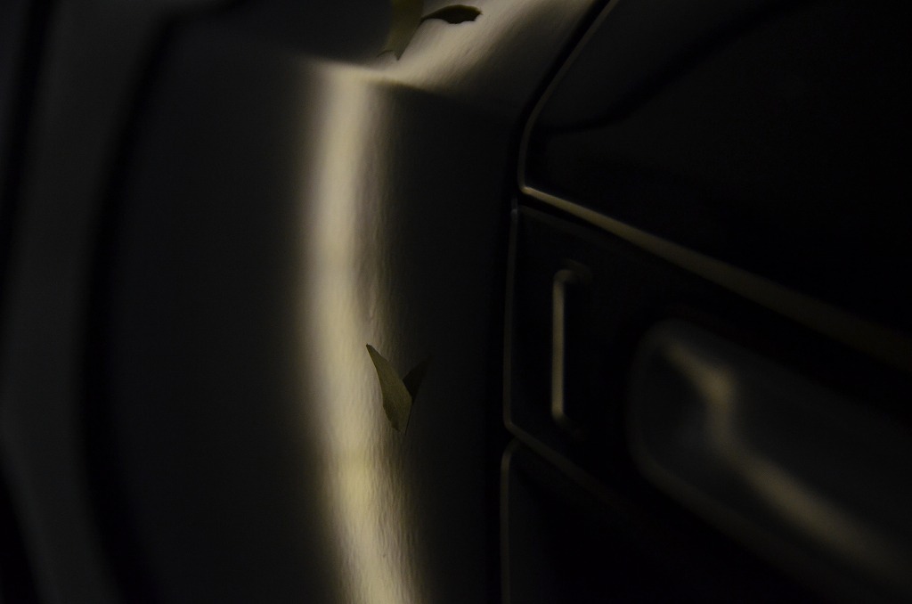 リヤフェンダーに薄っすらと・・・いつの間にかのドアパンチ痕のようです。