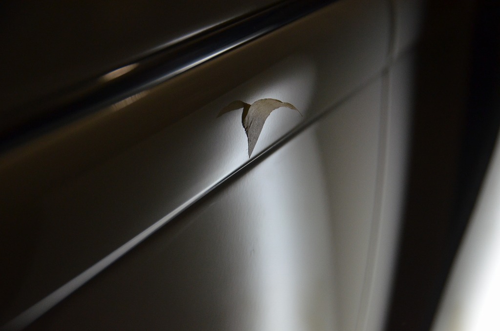 スライドドアの上部、間違いなく裏が2重になっている何とも嫌らしい場所です(>_<) 僅かなへこみとは言えオーナー様も一度見つけてしまうと気になってしまうというご性格ですので何とかしなければなりません(-ω-)/ 傷さえなければプーリングでリペア出来るへこみですが塗装が剥がれたら元も子のないので頑張って工具アクセスを探ります。