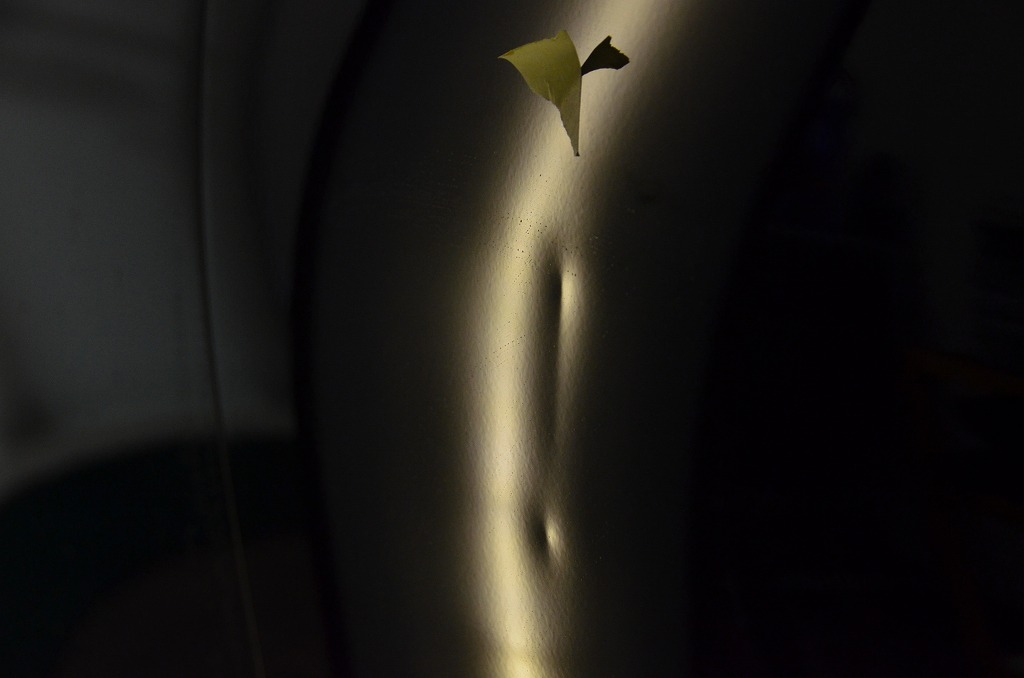 町田市内より・・・トヨタアルファードのオーナー様はボンネットに飛び石によるへこみでご相談いただきました。既に中心の塗装面が点で欠けているのでリペア後も傷が残ってしまいますがへこみだけを出すことでかなり改善するケースでもあります。