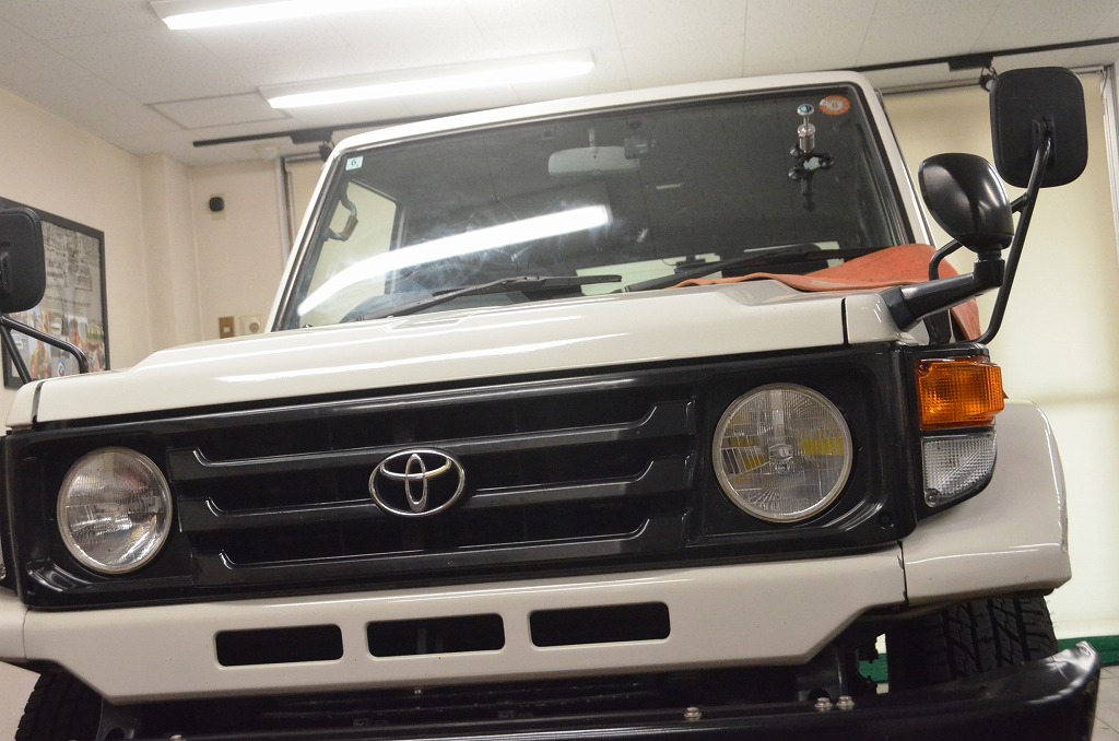 町田市内より・・・トヨタランドクルーザーのリピーター様もガラスリペアでご来店。こちらは拝見した瞬間”ちょっと難儀しそう!?”っという形状でした。