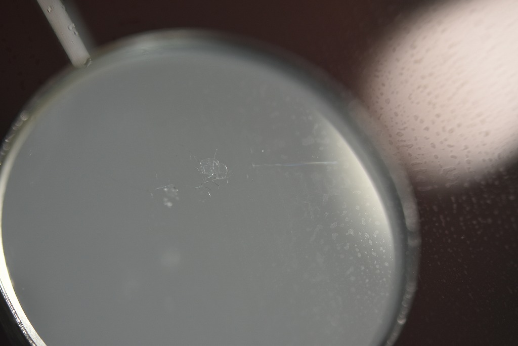 2か月程前に出来た飛び石痕とのことで少し心配(早めの施工が最も綺麗且つ確実に仕上がりますので・・)でしたが・・・全体のサイズはリペア基準の500円玉大レベルですが2か所のヒビが内部で繋がっている状態となります。