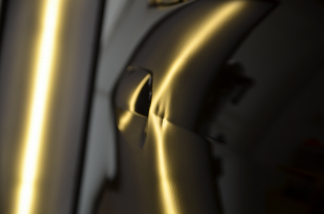 またまたいつの間にかリヤドアにドアパンチ被弾(>_<)・・・これ、ちょっといびつですがドアエッジが当たってから横にズリッと少し擦られているケースです。