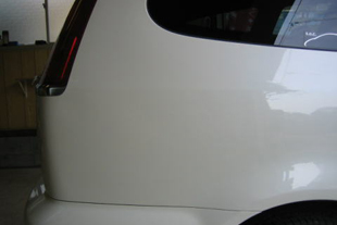駐車中の悪戯によるへこみです。酔っ払いによるものでしょうか?全く許せませんね。中心の黒い筋はおそらく靴底の跡かと思われますが深い部分が2ヶ所ありました(2発足蹴りくらったようです・・・)